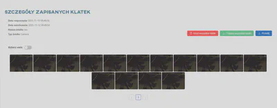 W sekcji Zapisane klatki możesz przeglądać zapisane klatki z transmisji z kamer i filmów. Możesz je pobrać, przesłać do zbioru danych lub usunąć.
